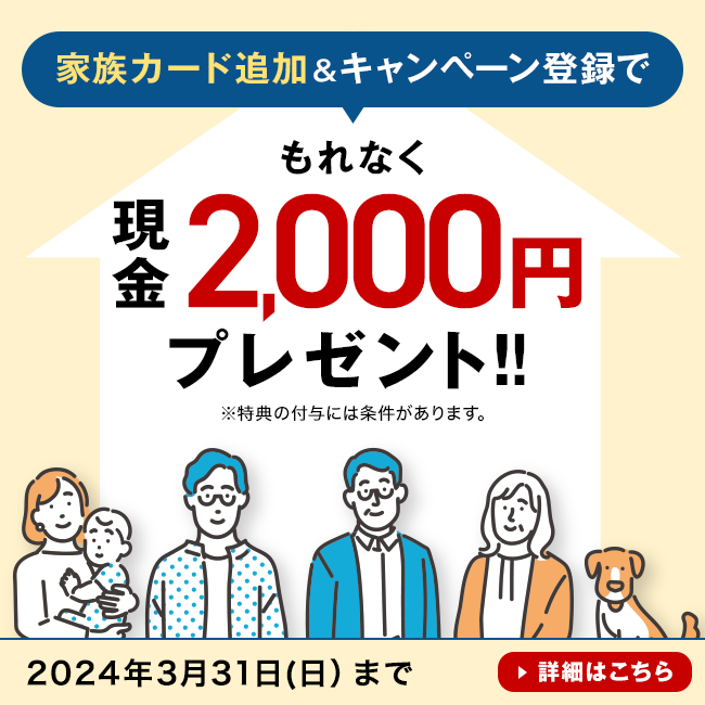• ※高校生の場合でも高校卒業年度の10月1日以降のお申し込み、かつ卒業後の進路が決まっている場合は家族カードの発行が可能です。