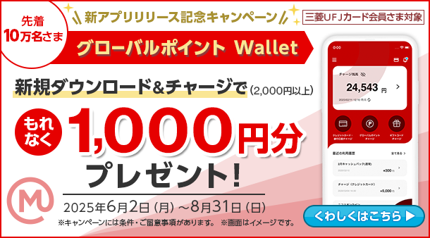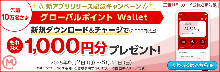 • グローバルポイント Walletへチャージして、お買い物で利用可能