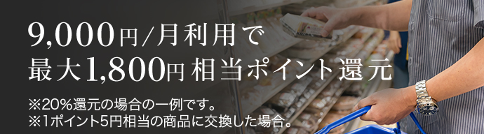 ※ 最大20%ポイント還元には、ご利用金額の上限など各種条件がございます。くわしくはこちらをご確認ください。