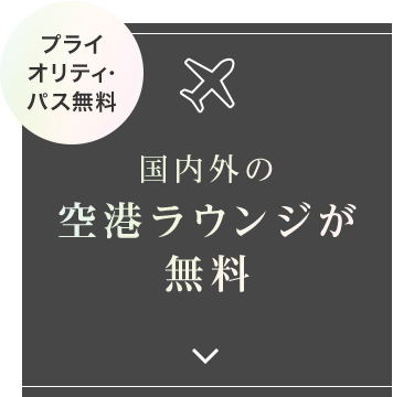 • 国内外の空港ラウンジのみご利用いただけます。くわしくはこちら新しいタブやウィンドウで開くをご確認ください。