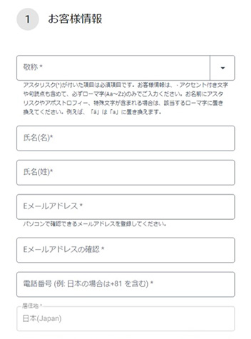 STEP4. 氏名(パスポートと同じお名前・表記を入力ください)やEメールアドレス、
