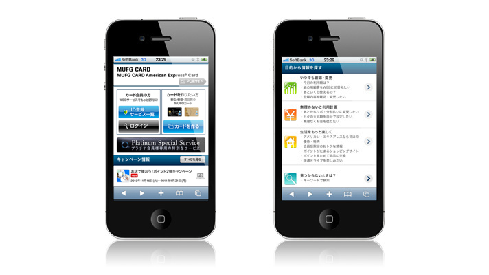 このような状況下、当社ではスマートフォンに対応した専用サイトを2010年9月13日に開設いたしましたが、このたびMUFGカード・アメリカン・エキスプレス・カード WEBサイトにも対応いたしました。