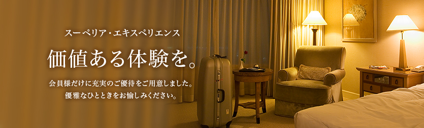 アメリカン・エキスプレス®・カードのプラチナ会員様だけがご利用いただける特別なご優待プログラム「スーペリア・エキスペリエンス」は、プラチナ会員様の大切なひとときを、限りない至福の時間へと演出いたします。