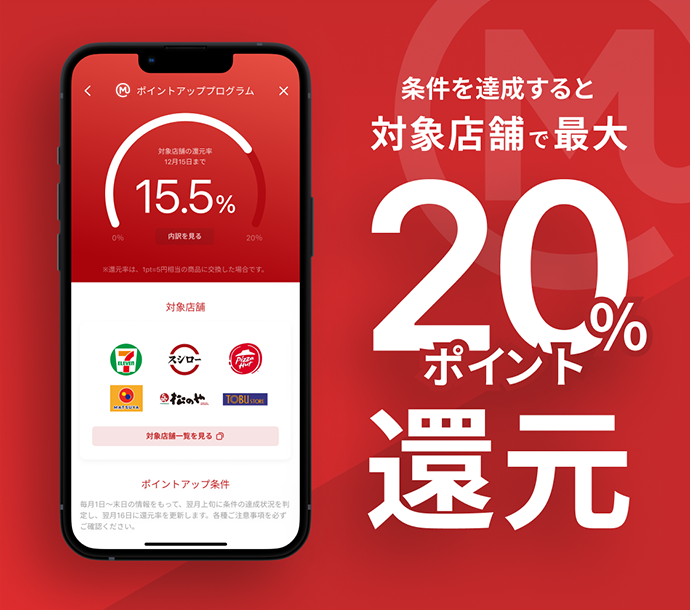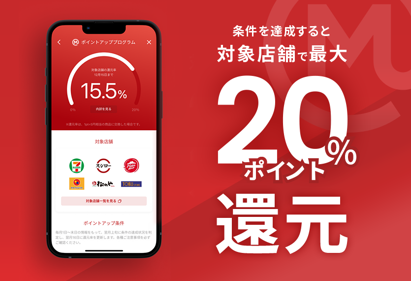 対象店舗で最大20%ポイント還元のWEBサイトへ移動します