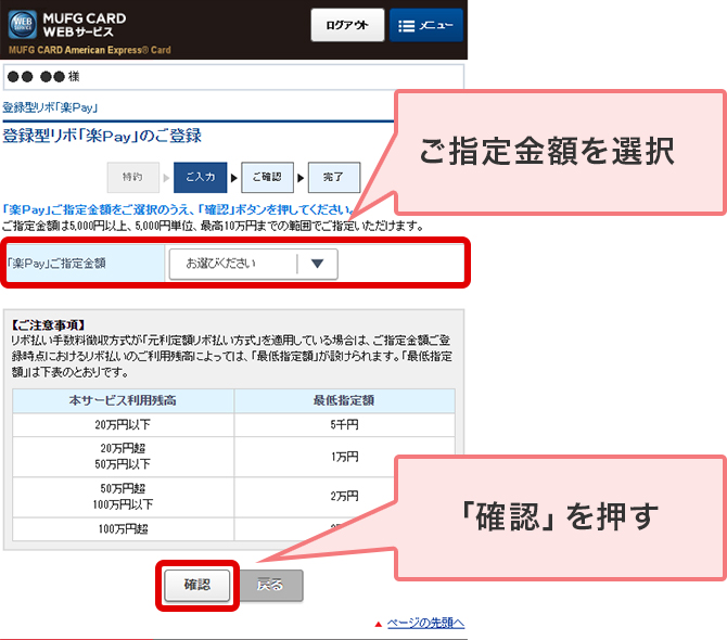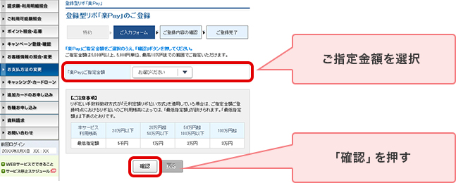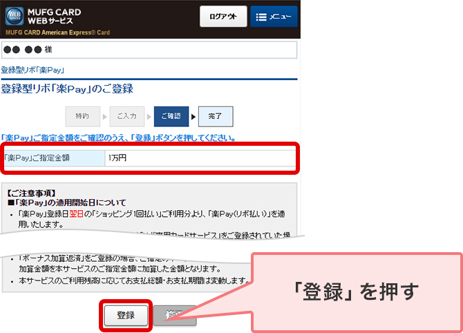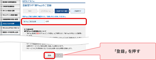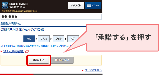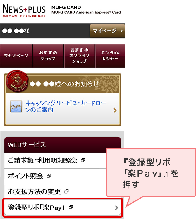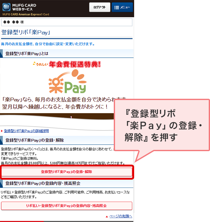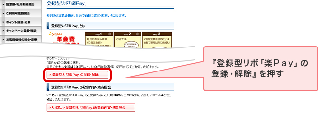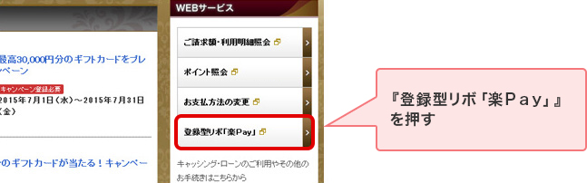 登録型リボ「楽Pay(らくペイ)」へ移動します