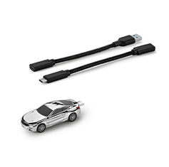 シルバーのM850i×DriveクーペのUSBメモリー。USB-CとUSB接続に対応したUSBメモリーとUSBケーブル2本セット。