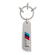 バックにMade in Germany、BMWロゴ、UNLOCKING FREUDEの刻印。複数のキーを追加できるスプリット・リング付き。