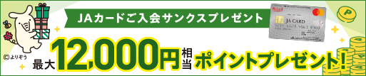 JAカードわいわいプレゼント 1ヵ月のショッピングご利用金額合計1,000円ごとに基本ポイントが1ポイント |