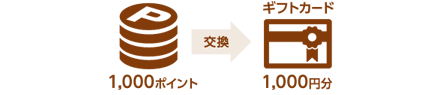 1,000ポイントで三菱地所グループ共通ギフトカード1,000円分と交換できます。