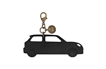 MINIに採用したシートのレザーをアップサイクルしたカーのチャーム。