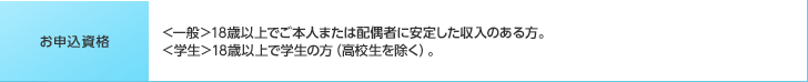 <一般>18歳以上でご本人または配偶者に安定した収入のある方。