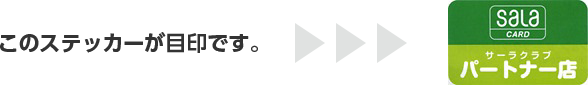 このステッカーが目印です。 ▶▶▶ salaCARD サーラクラブパートナー店