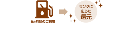 6ヵ月間のカードショッピングのご利用金額をもってランクが決定し、翌6ヵ月間apollostation スターレックス カード加盟SSでの給油ご利用分に対して、ランクに応じた還元が適用されます。