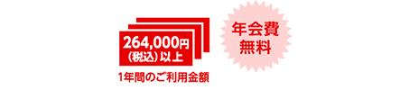 入会した初年度は年会費無料です。サービスステーションでのご利用分を含めたカードショッピングのご利用金額の合計が、入会月から1年間で264,000円(税込)以上になると、翌年もカード年会費2,200円(税込)が無料となります。