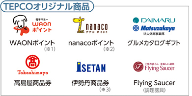 たまったポイントは、「DCハッピープレゼント」のポイント交換商品に加えTEPCOカード会員様だけのオリジナル商品等と交換できます。