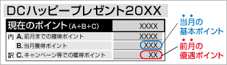 DC Webサービスまたはご利用代金明細書のDCハッピープレゼントポイント欄にて獲得ポイントを確認できます。