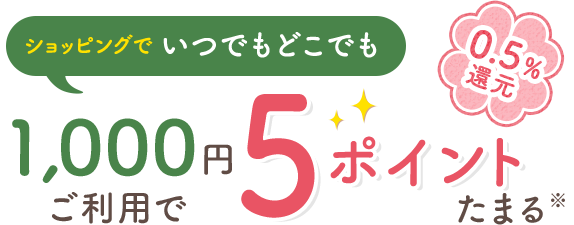 - 個別明細ごとに100円あたり0.5ポイントで計算。ポイントの蓄積期間はご入会日を基準に1年間です。