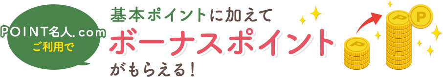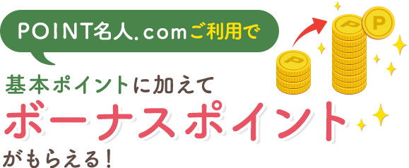 いつものネットショッピングの際にPOINT名人.comを経由してお買い物いただくと、カードの基本ポイントに加えてボーナスポイントがもらえます。