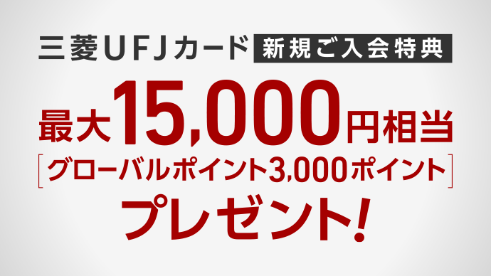 ![三菱UFJカード新規ご入会特典 最大15,000円相当[グローバルポイント3,000ポイント]プレゼント!](/campaign/img/index_cpbanner_0001.png)