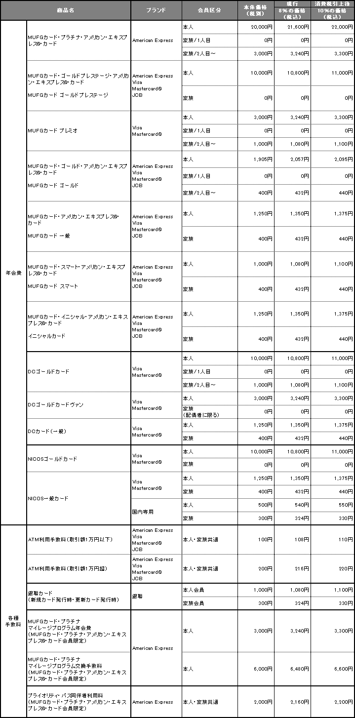 ※上に記載のない商品・サービスにつきましても、2019年10月1日以降は消費税率10%を適用させていただきます。