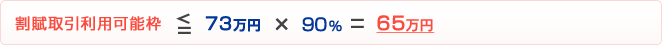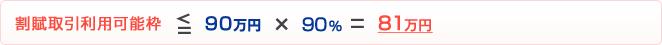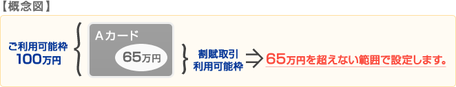 ◆カードご利用可能枠の他に、包括支払可能見込額の90%を超えない額にもとづき、割賦取引に適用されるご利用可能枠(以下、「割賦取引利用可能枠」といいます)を設定させていただきます。「割賦取引利用可能枠」がカードご利用可能枠を下回る場合は、割賦取引を制限させていただくことがあります。