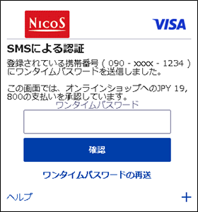 - ワンタイムパスワードは、本人認証サービスご登録時に設定された