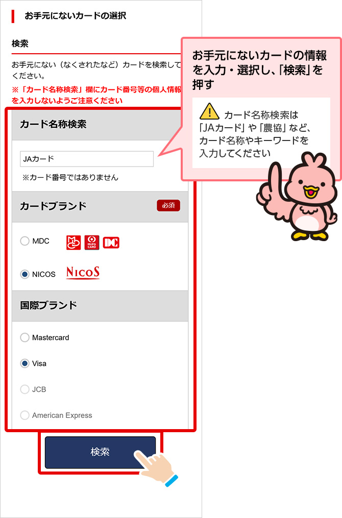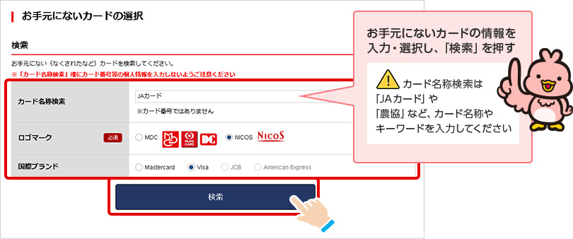 STEP 1.盗難・紛失カードを検索する