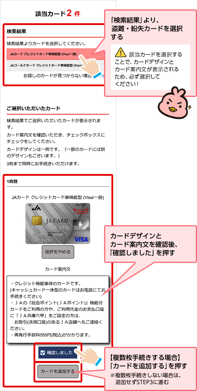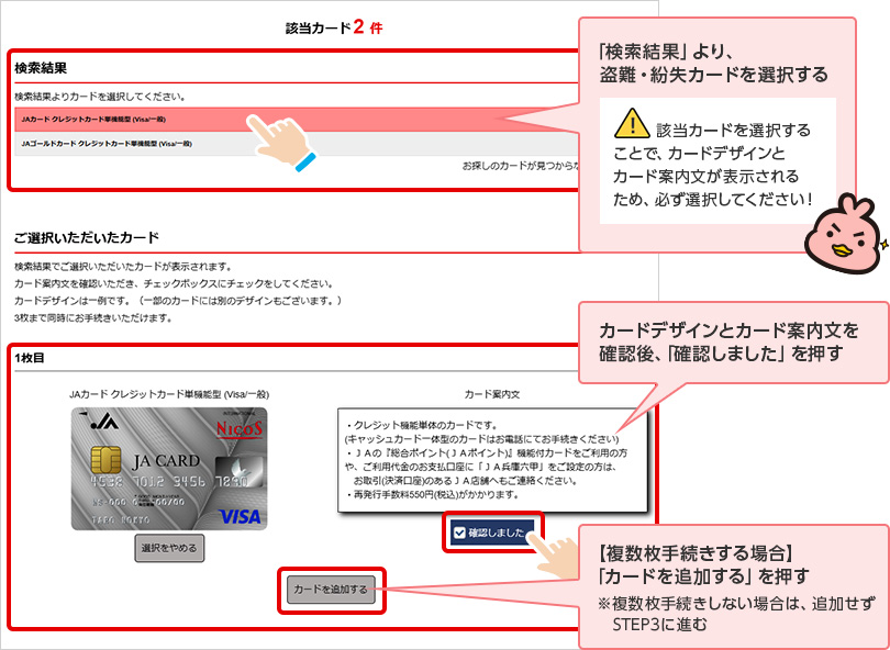 STEP 2.盗難・紛失カードを選択する
