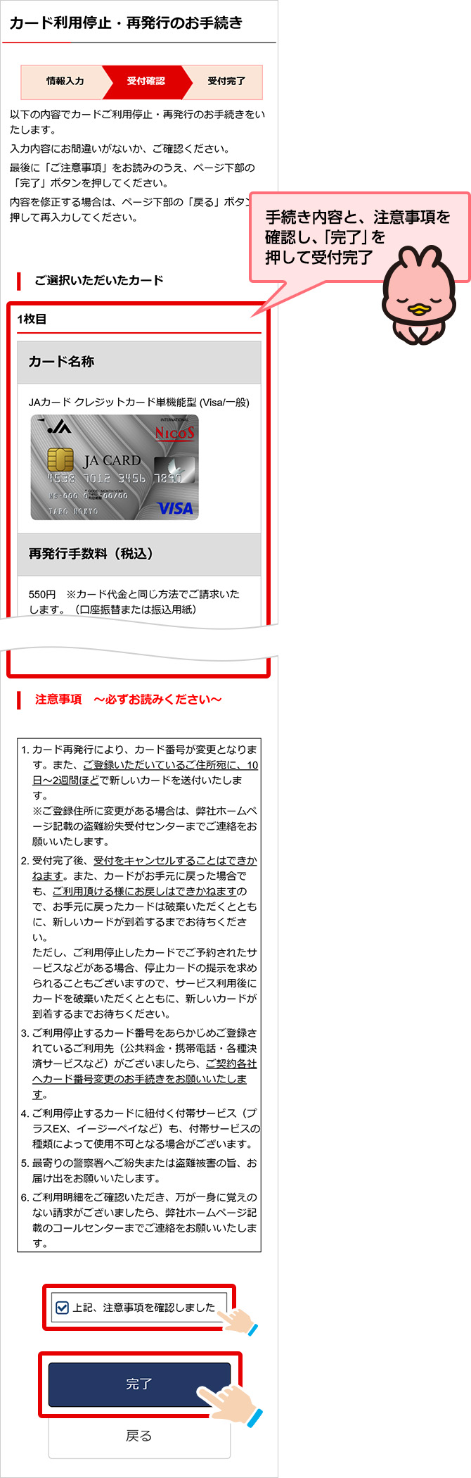 STEP 4.手続き内容を確認し、受付完了