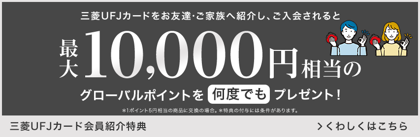 - ・三菱UFJカード・プラチナ・アメリカン・エキスプレス®・カードは、2回払い・ショッピング利用時のリボ払いをご利用いただけません。