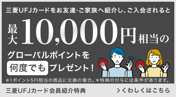 (無休・年末年始は休み)三菱UFJカード・プラチナ・アメリカン・エキスプレス®・カードは、アメリカン・エキスプレスのライセンスに基づき、三菱UFJニコス(株)が発行・運営しております。「アメリカン・エキスプレス」は、アメリカン・エキスプレスの登録商標です。
