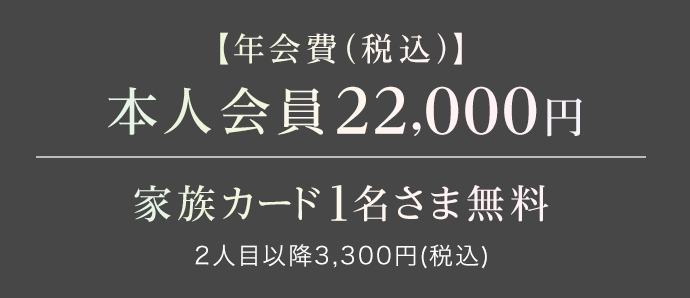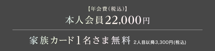 [家族会員] 1名さまは無料、2人目より1名さまにつき3,300円(税込) |