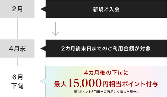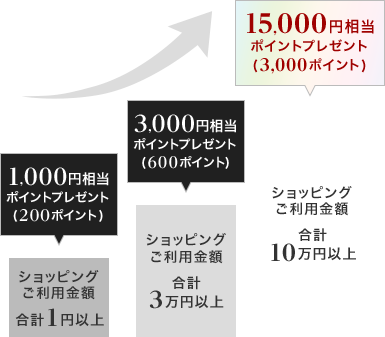 - ※ご入会日から2ヵ月後末日までのショッピングご利用金額合計額に応じてプレゼント額が変わります。