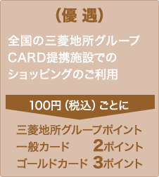 三菱地所グループCARDに新規にご入会いただきました会員様のご入会特典として、三菱地所グループポイントを一般カードは1,000ポイント、ゴールドカードは3,000ポイントプレゼントします。