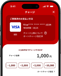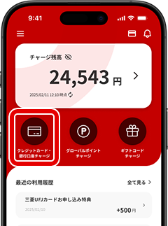 グローバルポイントの他に、クレジットカード、銀行口座からもチャージ可能です。