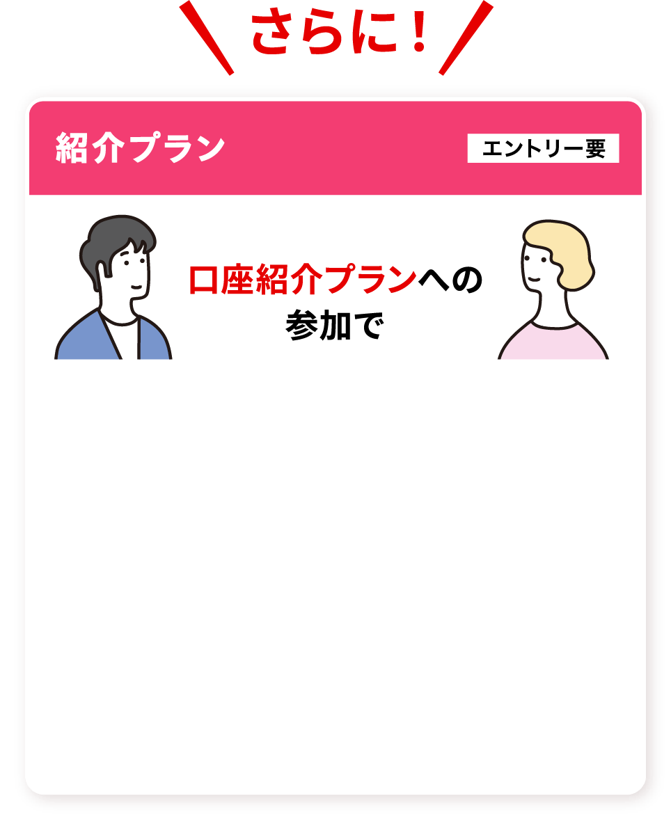 紹介される方の口座開設の翌月末時点でエントリー有無を確認、口座開設の翌々月末までに特典を提供