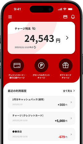 • グローバルポイント Walletへチャージして、お買い物で利用可能