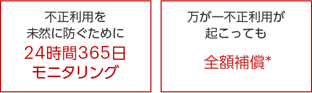 万が一、第三者による不正利用に遭っても全額補償(*) 万が一、第三者による不正利用に遭っても全額補償(*)