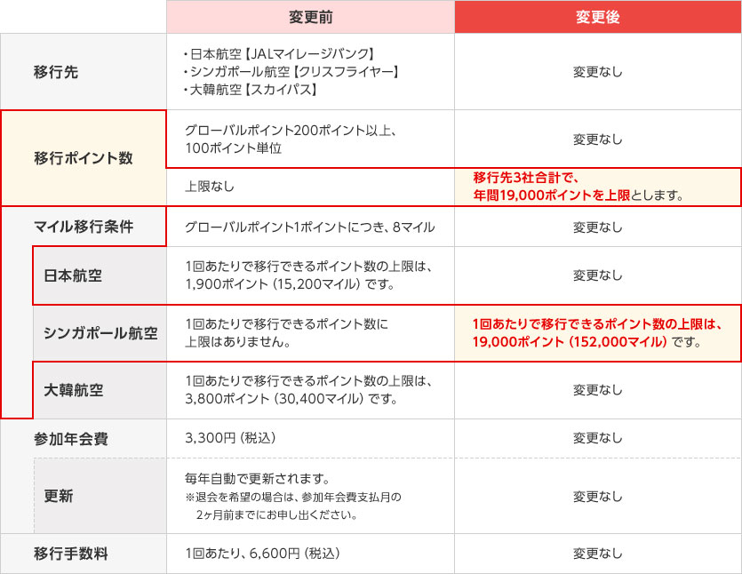 - 上限適用開始月を含む12カ月間において、移行ポイント数の上限を19,000ポイントとします。(翌年以降も同様)