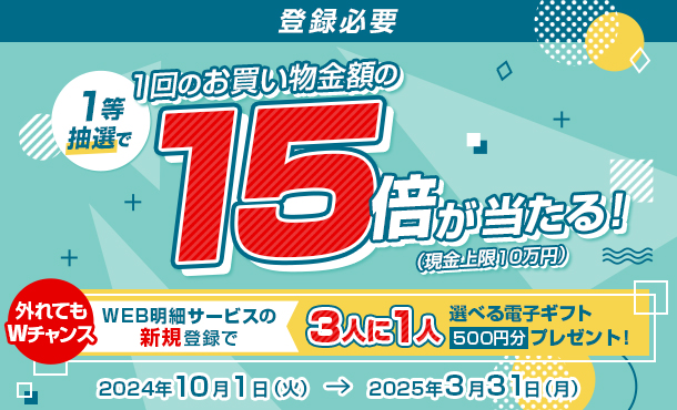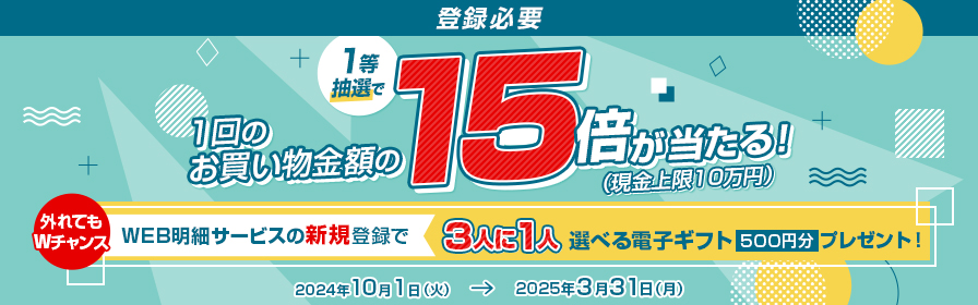 「WEB明細サービスの新規登録で選べる電子ギフトが3人に1人当たる!」キャンペーンを実施しております。