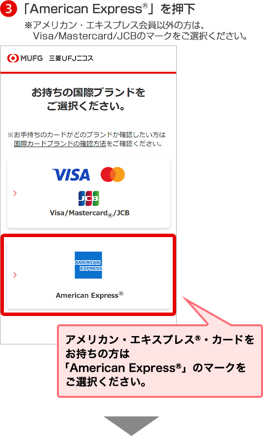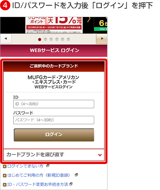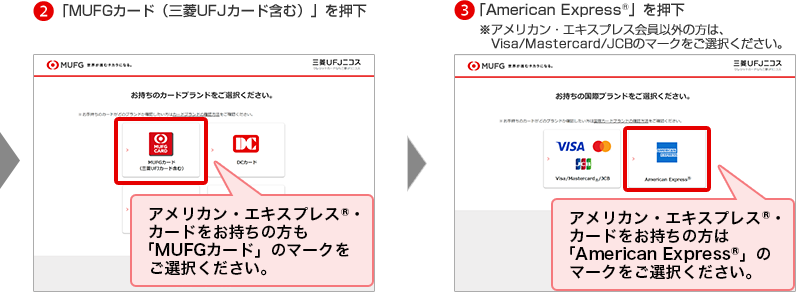 - MUFGカードWEBサービスログイン時のブランド選択画面