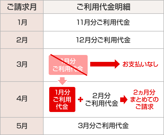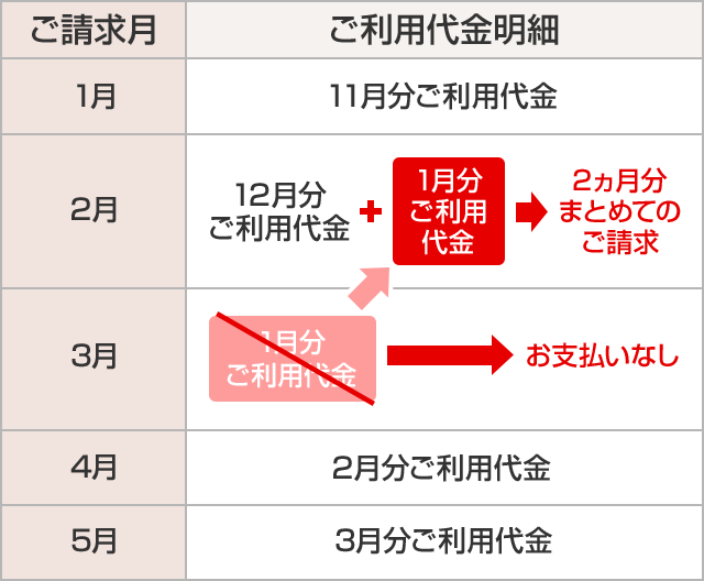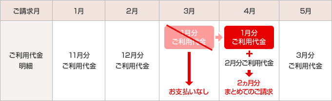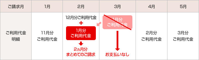 1月分ご利用代金が、通常よりも1ヵ月後にご請求となるケース