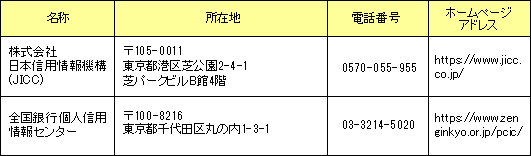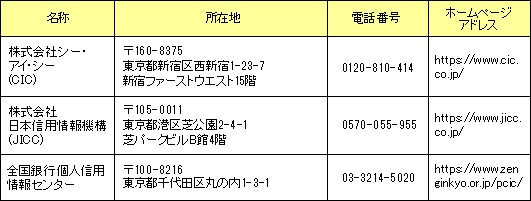 - 加盟個人信用情報機関および提携個人信用情報機関の業務内容、加盟資格、加盟会員企業者名等の詳細は、各機関のホームページをご覧ください。