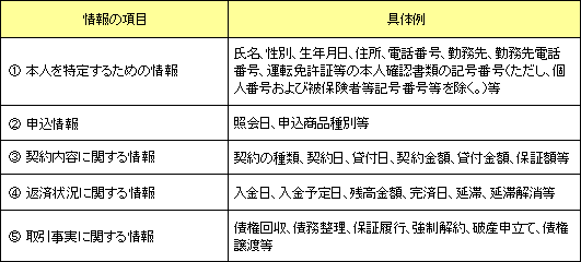 - 当社が加盟個人信用情報機関に登録する情報は、以下のとおりです。