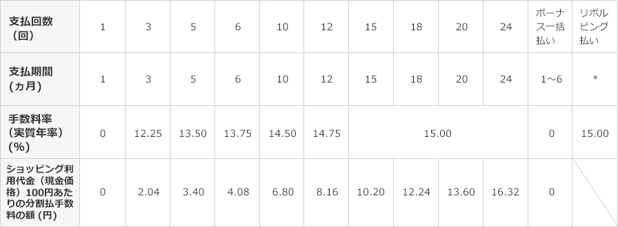- リボルビング払いの支払期間は、そのときどきのショッピングリボ残高および支払コースにより相違します。