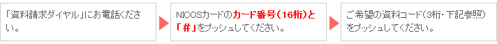 資料請求ダイヤルにお電話いただき、音声ガイダンスにしたがって操作してください。