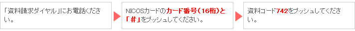 資料請求ダイヤルにお電話いただき、音声ガイダンスにしたがって操作してください。