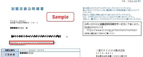 お手元に「加盟店振込明細書」がある場合は、以下赤線枠内をご参照ください。(前から25桁)