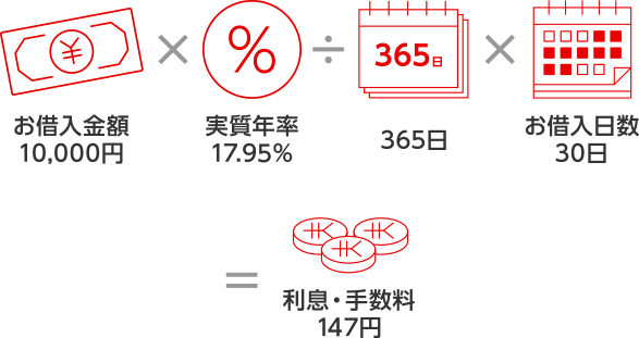 ※実質年率17.95%で、10,000円を30日間お借り入れの場合