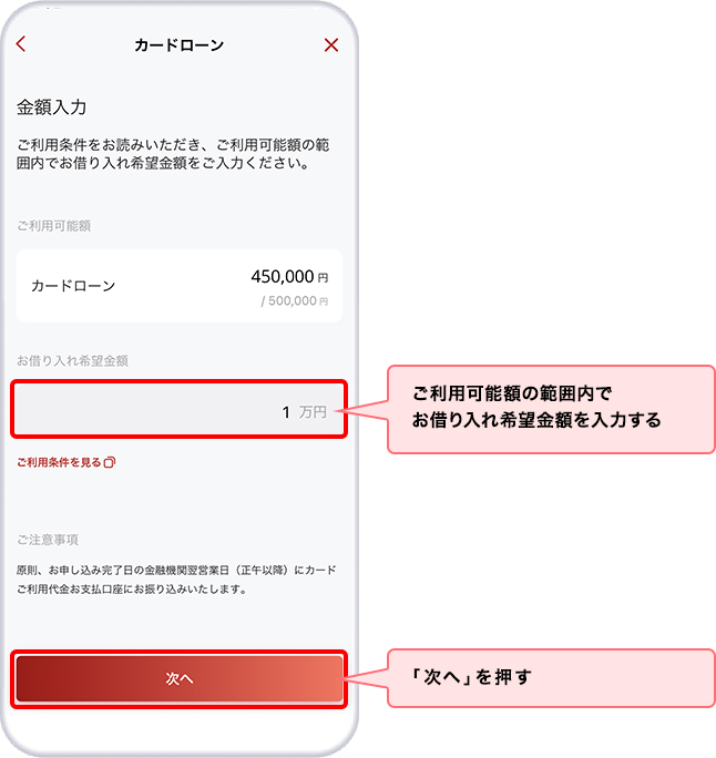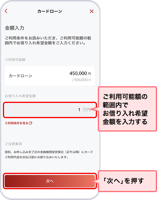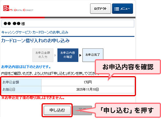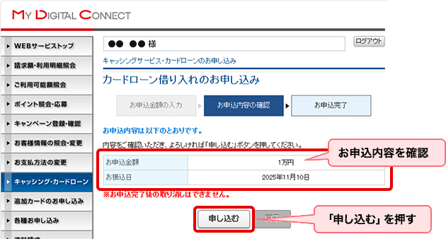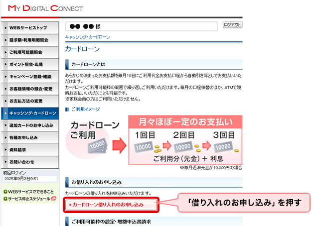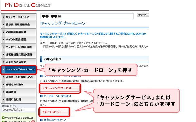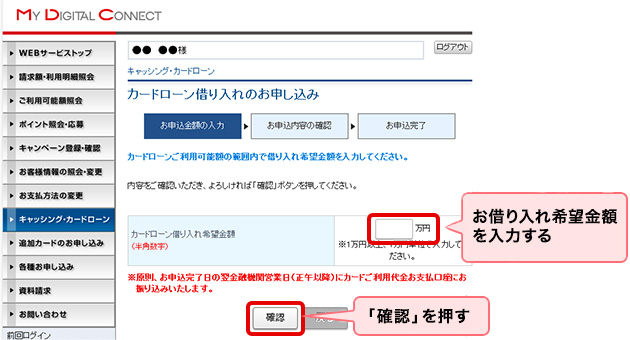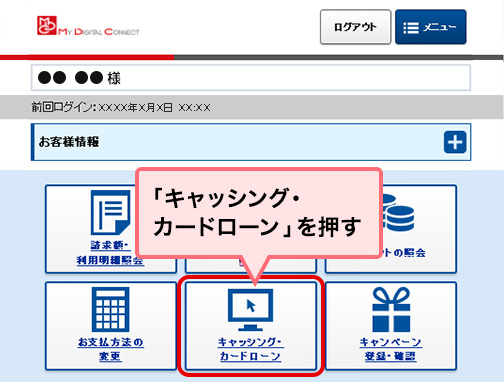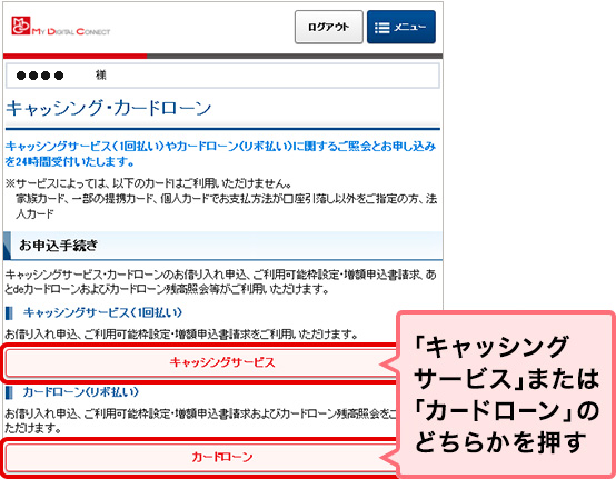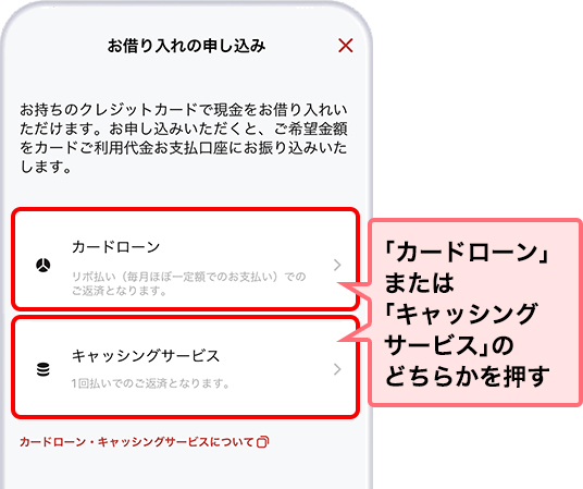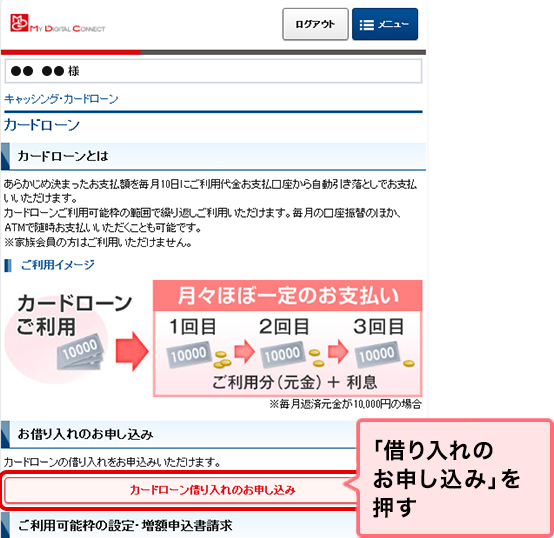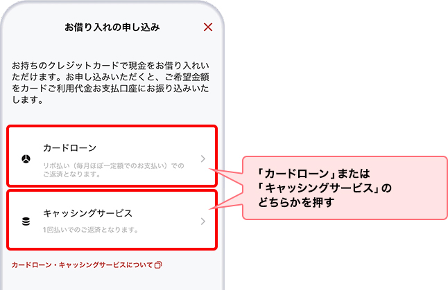 - 以降は、キャッシングサービスも同様の手順でお手続きいただけます。